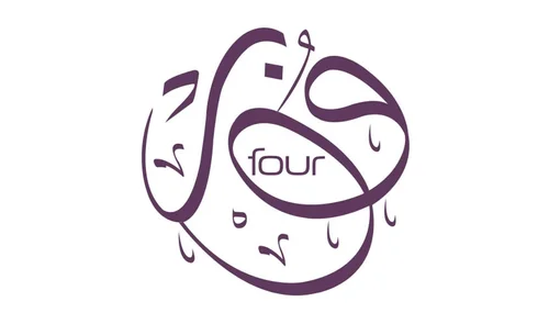 Four Communications brochure for the Gulf region. I created a brochure based on brand guidelines. I wanted to produce something simple but elegant, dual language, 21cm sq, perfect bound, 20 pages plus an outer sleeve for the brochure to sit within. I decided to combine Arabic calligraphy alongside the Four logo. The calligraphy represents the word Four in Arabic. A calligrapher was commissioned and I fine-tuned the logo to achieve the right shape.